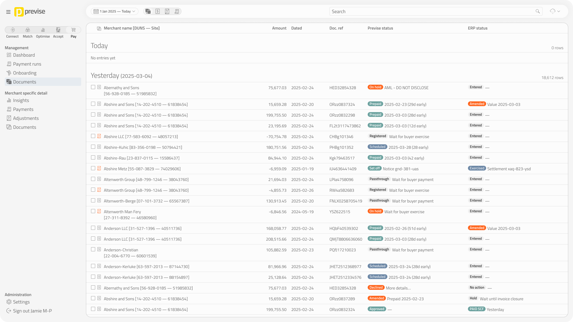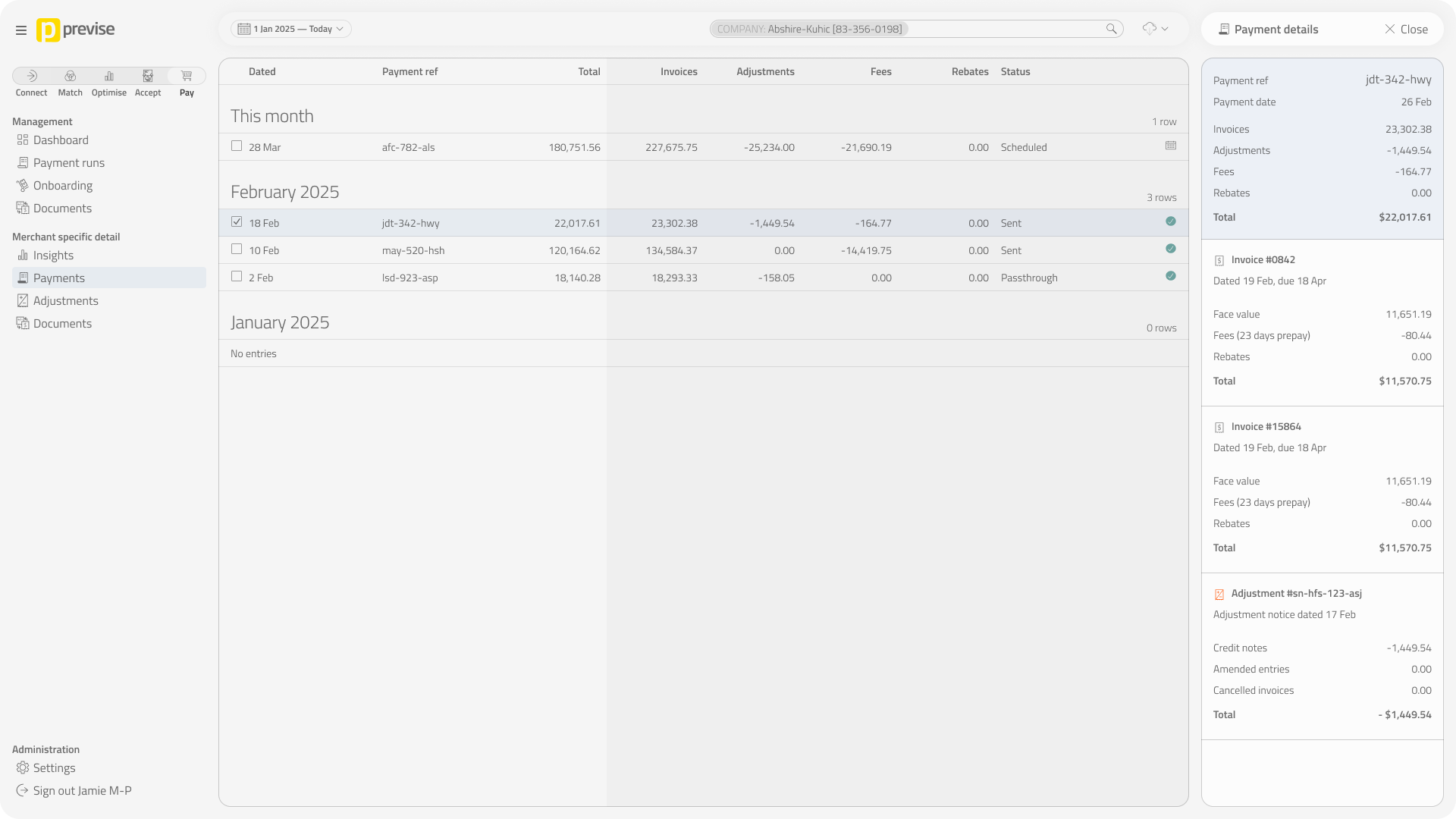 SmartPay was Previse’s virtual card payment product. I designed a portal concept for sales discussions and the website — combining operations management views (document queues, payment runs) with supplier self-service screens. Bundling both perspectives into one UI made production faster and reflected how ops staff would actually investigate issues: by seeing what suppliers see. Never built, but useful for moving conversations forward.